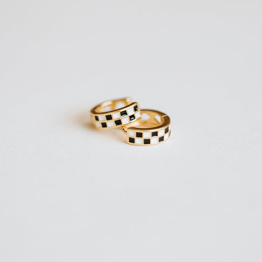 Black & White Checkered Hoops (Silver)