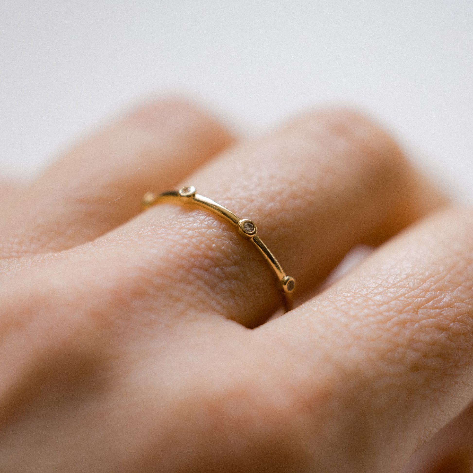 Simple and stylish, this band ring features delicate cubic zirconia accents in a seamless loop design. Its subtle sparkle makes it perfect for everyday wear or dressing up for special occasions. A timeless piece that pairs effortlessly with any outfit, from casual to formal