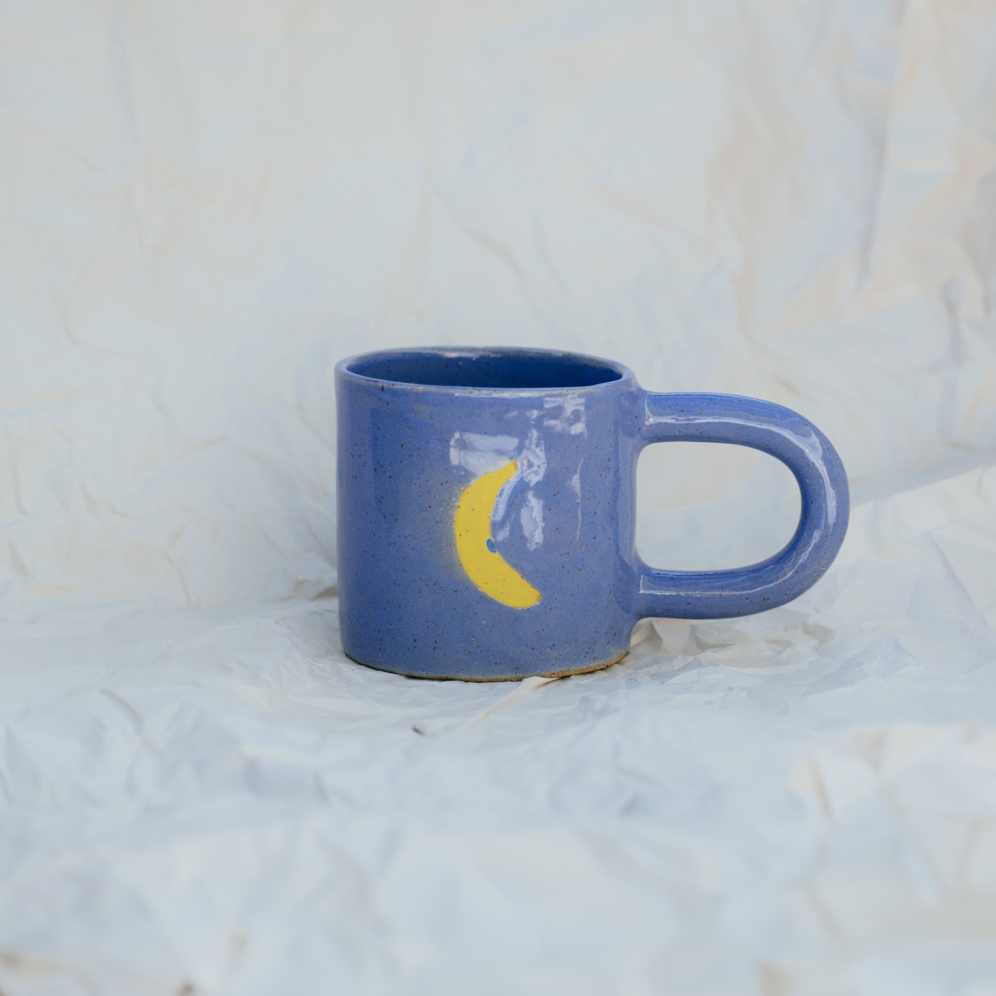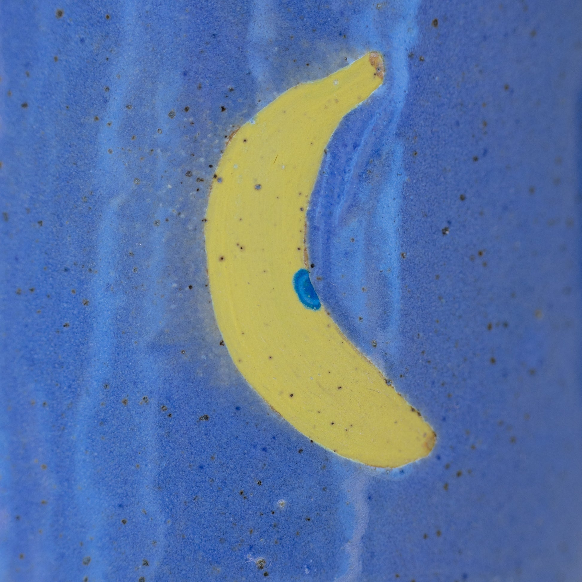 The Banana Chunk Mug is here to bring a little joy to your daily coffee routine—no peeling required. Handbuilt from speckled brown clay using the slab technique, it’s got that perfectly imperfect, just-right feel that only handmade ceramics can offer. A single banana is painted on the side, complete with a tiny blue banana sticker—because even bananas need a little flair. The sticker lands in a slightly different spot on every mug, making each one totally unique.