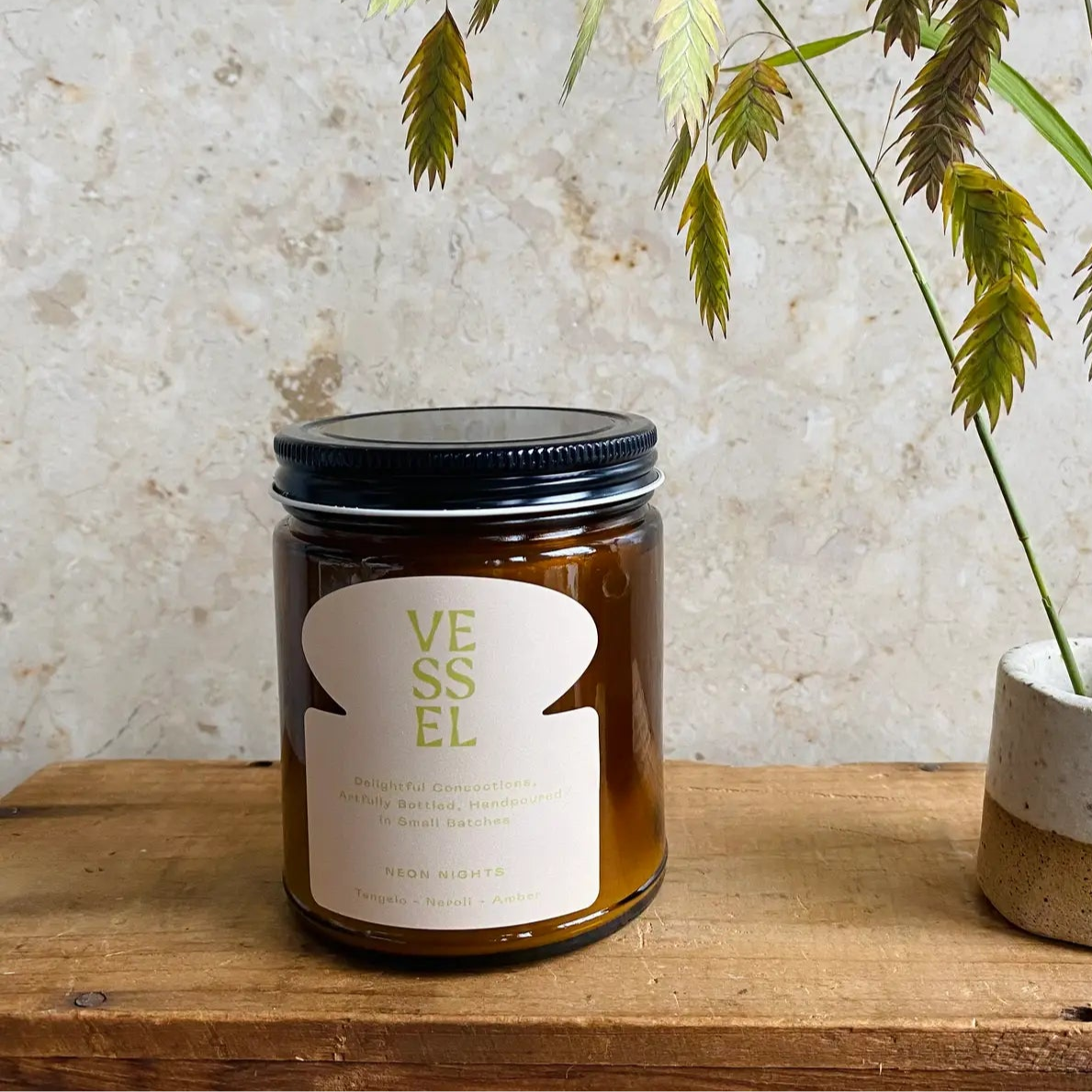 Vessel candles are hand poured in small batches using a blend of coconut and soy waxes for a clean, eco-friendly burn. All candles use a lead-free cotton wick and high-quality fragrance and essential oils that are phthalate-free with no additives or dyes. All candles are vegan.