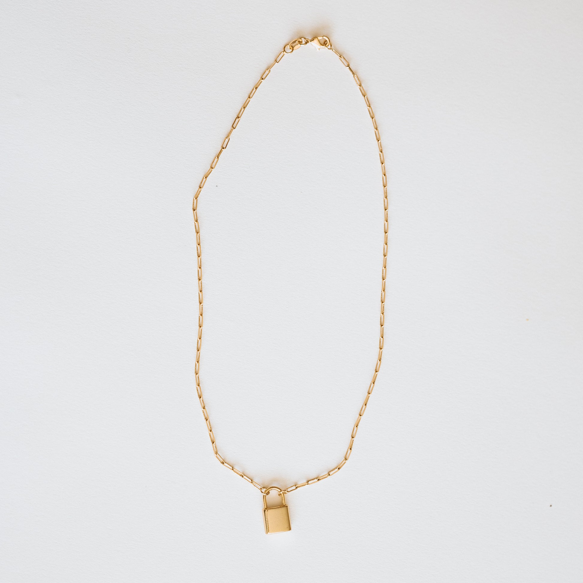 Gold filled lock on 16" 2mm gold filled paperclip chain. The perfect summer anthem piece for your collection.