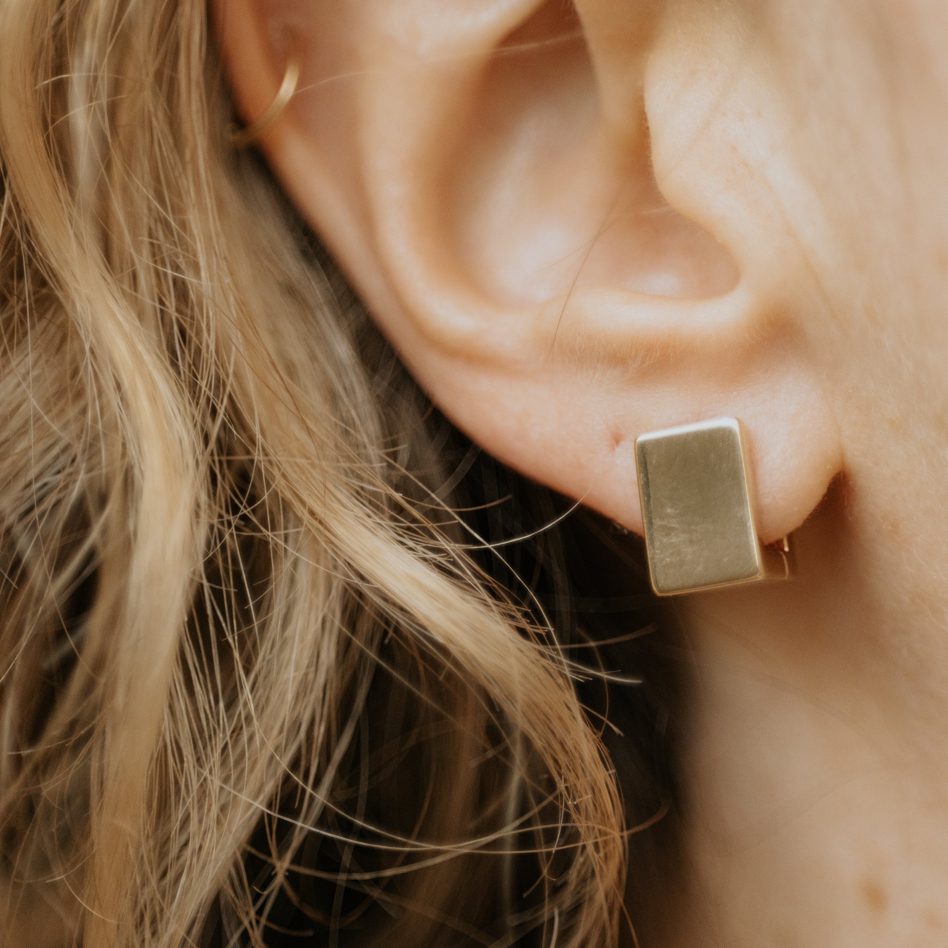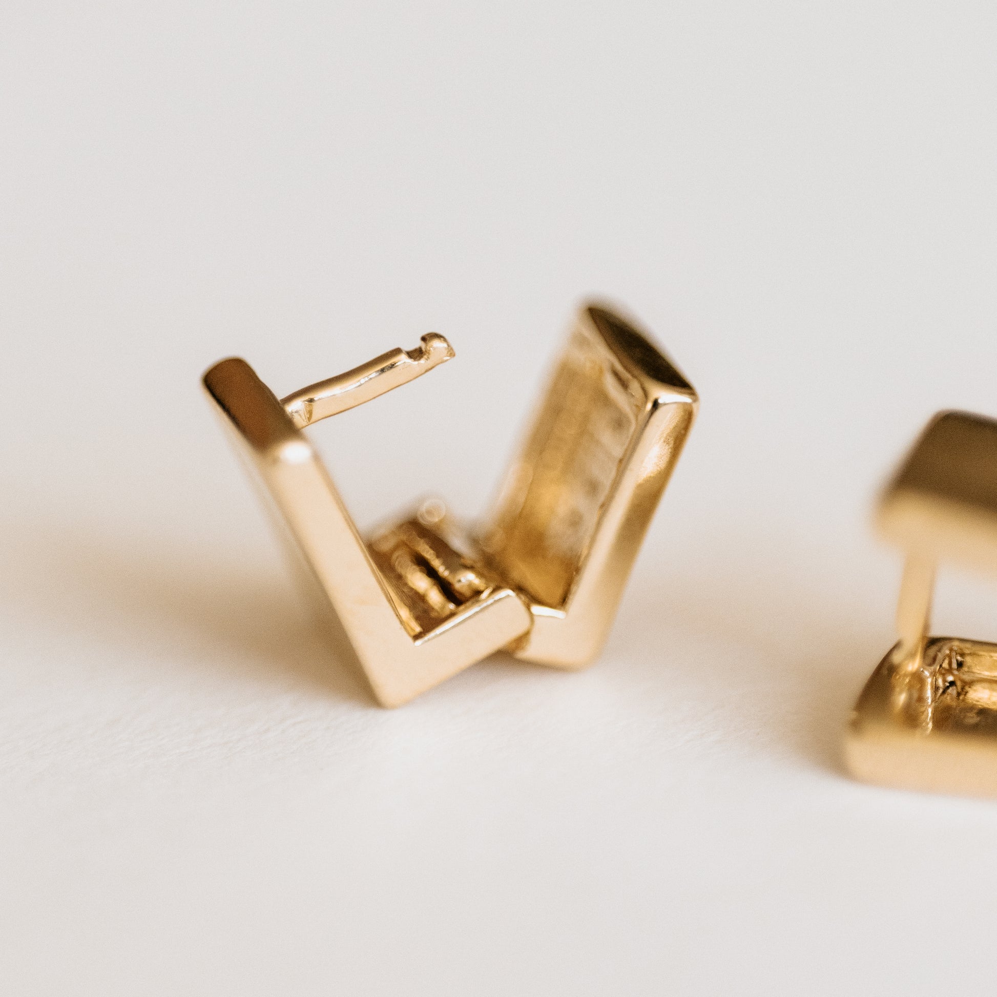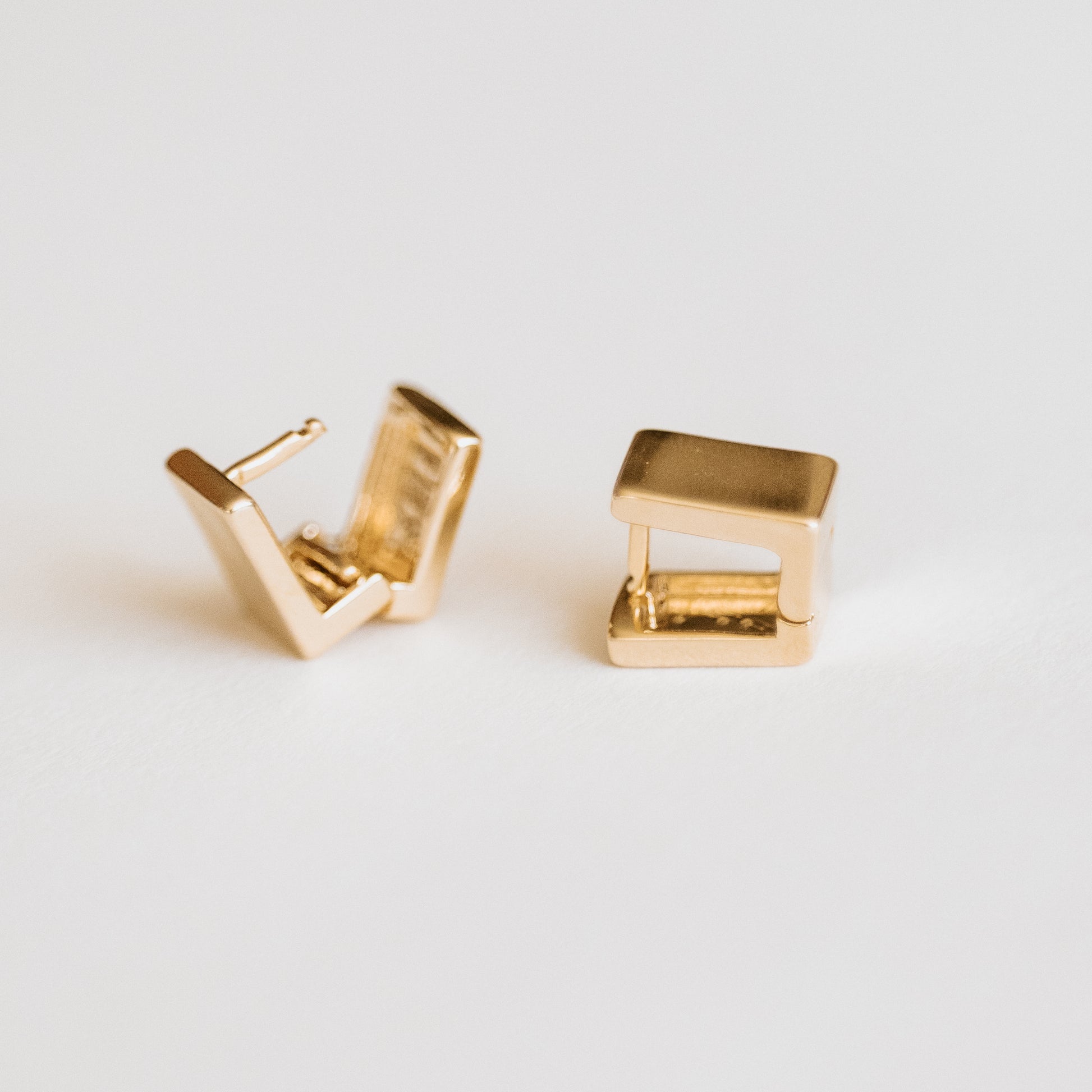 Chunky and funky these little square huggie earrings add a more modern flair to your wardrobe making them an elegant statement piece.