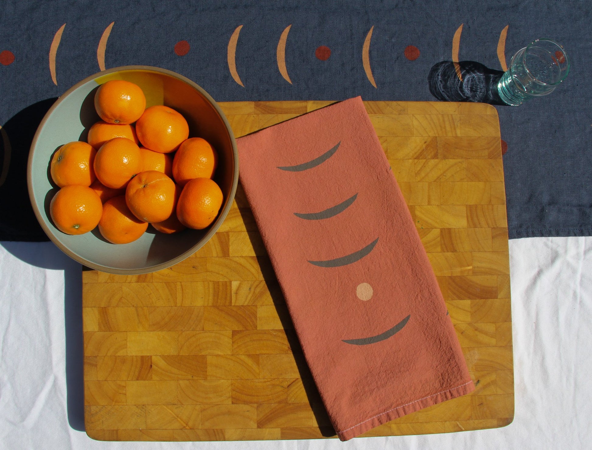 Cotton tea towel. Hand-dyed and screen printed using non-toxic water based ink.